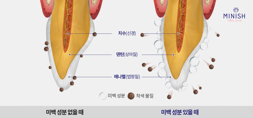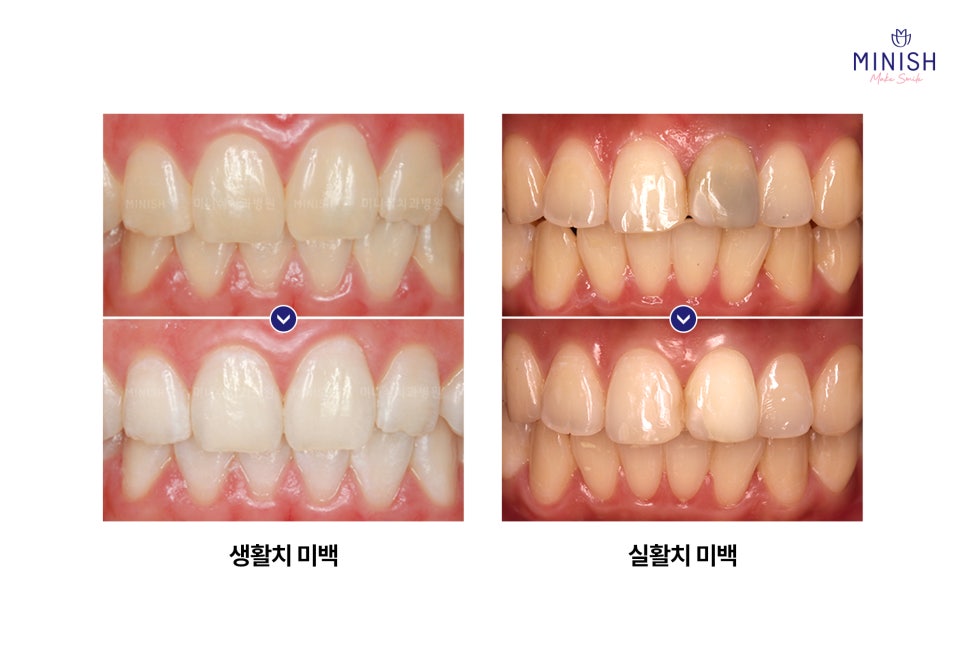 미니쉬 치료를 하기 전 미니쉬가 매우 얇아 본래 치아 색상이 비칠 수 있기 때문에 치아 미백을 통해 자연 치아의 색상을 최대한 밝게 끌어올려 줌으로써 미니쉬 치료 효과를 극대화하는 사전 치료라고 생각하시면 됩니다.