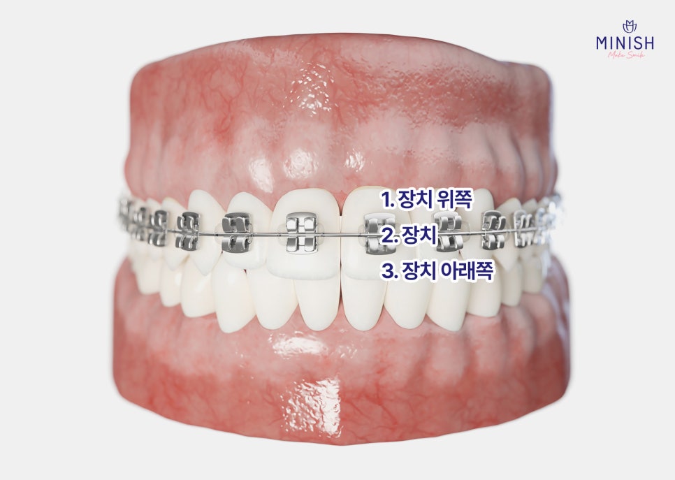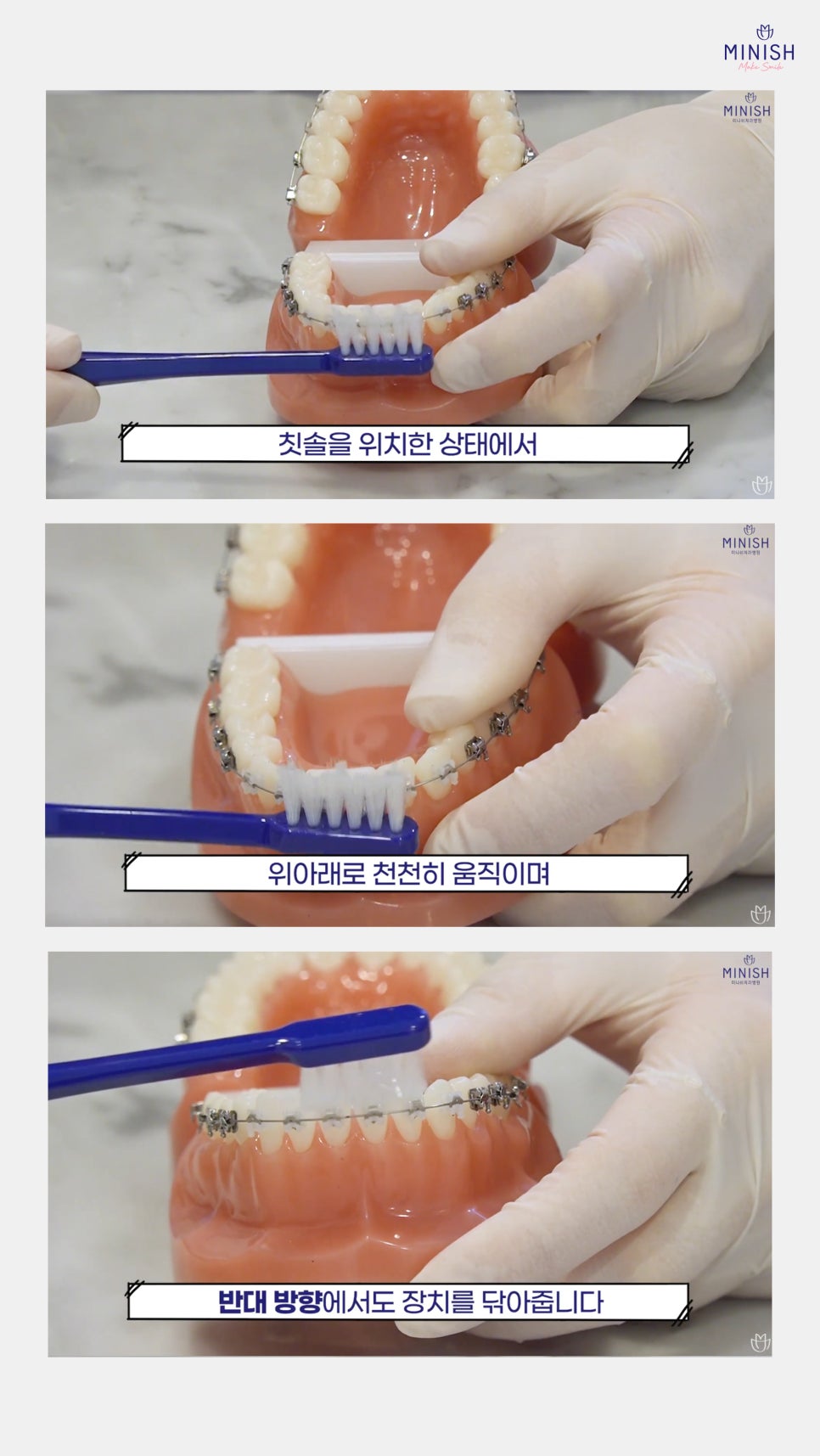 일반 칫솔로 교정 장치가 부착돼 있는 치아 닦는 법
