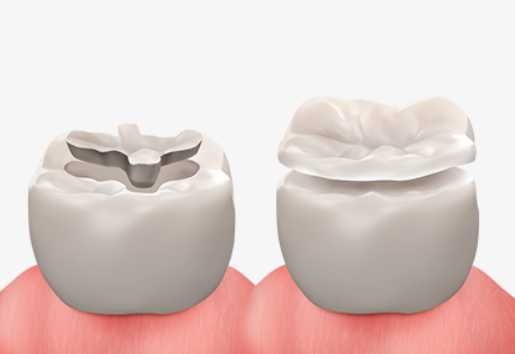 치아를 덮는 정도에 따라 인레이와 온레이로 나눠집니다. 세균이 좁고 길게 침투했다면 인레이, 넓은 영역을 수복할 경우 온레이 치료를 받게 됩니다.