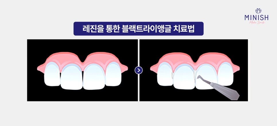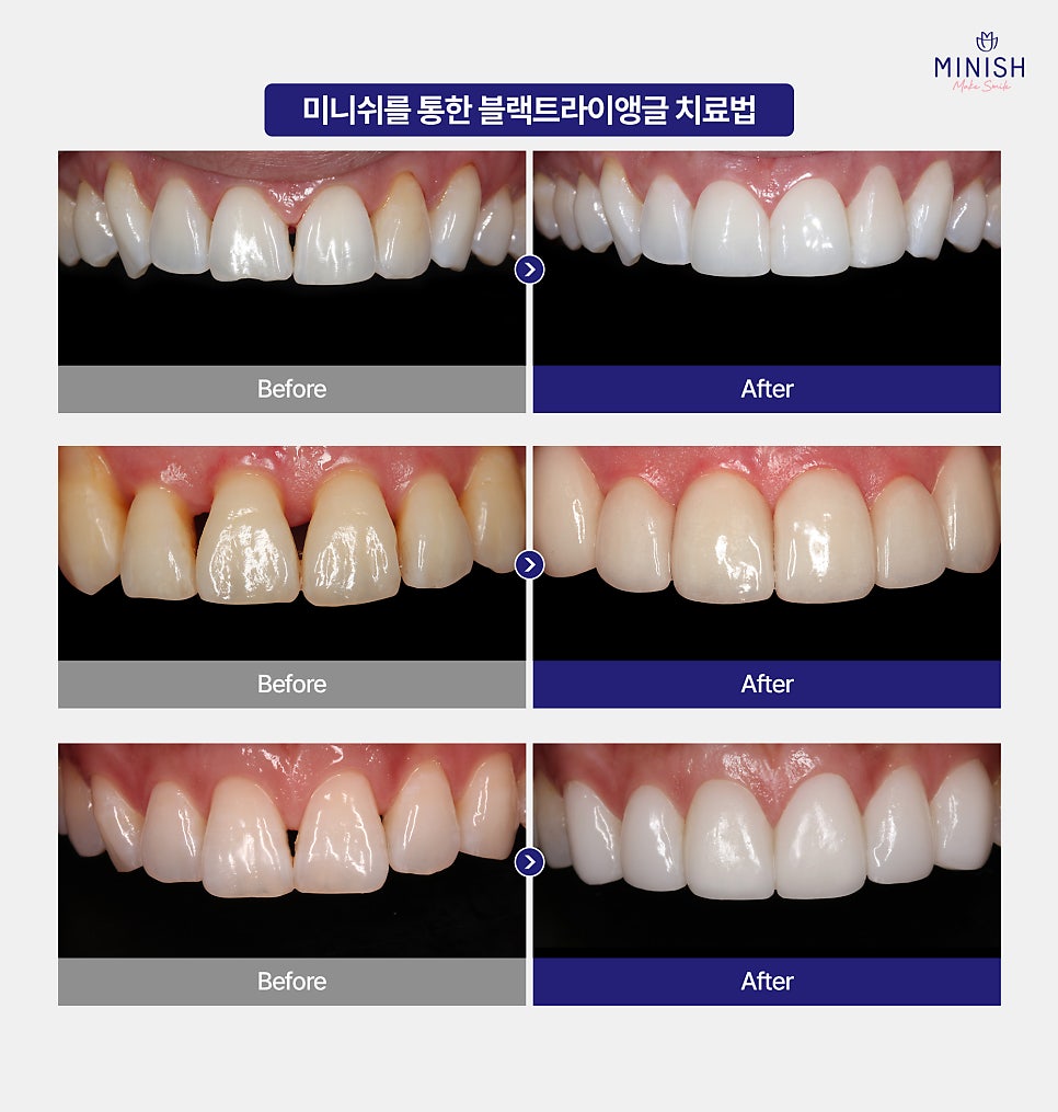 미니쉬는 치아 손상을 최소화하며 블랙트라이앵글을 자연스럽게 채우는 효과적인 방법입니다.