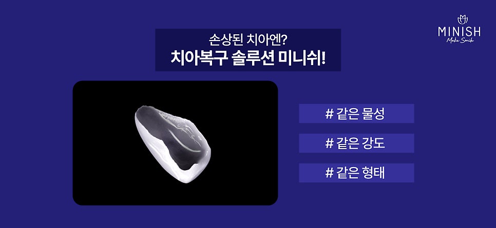미니쉬는 치아와 유사한 색상과 투명도를 갖추어, 치료 후에도 티가 나지 않고 자연스러운 외관을 제공합니다.