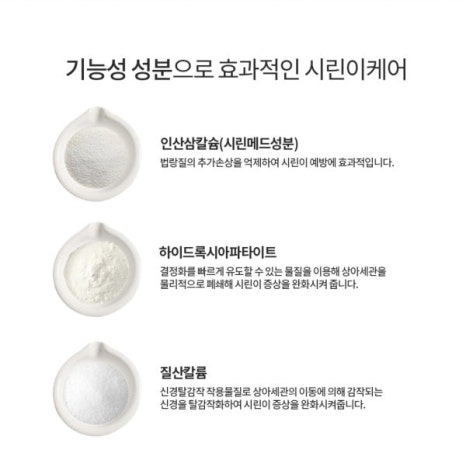 시린이를 예방하려면 치아와 유사한 입자인 인산삼칼슘과 하이드록시아파타이트 성분이 들어 있는 치약을 사용하는 것이 좋아요. 이 성분들은 시린이 증상을 완화하고 예방하는 데 도움을 줘요. 시린이 치약을 선택할 때는 기능성, 천연 성분으로 만들어지고 유해 성분이 없는 제품을 고르는 게 좋답니다.