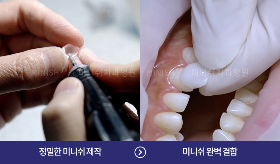 불필요한 치아 삭제 없이 자연치아와 비슷한 재료로 치료하고 싶다면, 치아복구 솔루션 미니쉬를 고려해 볼 수 있어요. 미니쉬는 자연치아와 가장 유사한 재료인 미니쉬블록을 사용해 손상된 치아를 복구하는 방법이에요. 앞니부터 어금니까지 적용이 가능해서 모든 치아를 치료할 수 있는 장점이 있어요.
