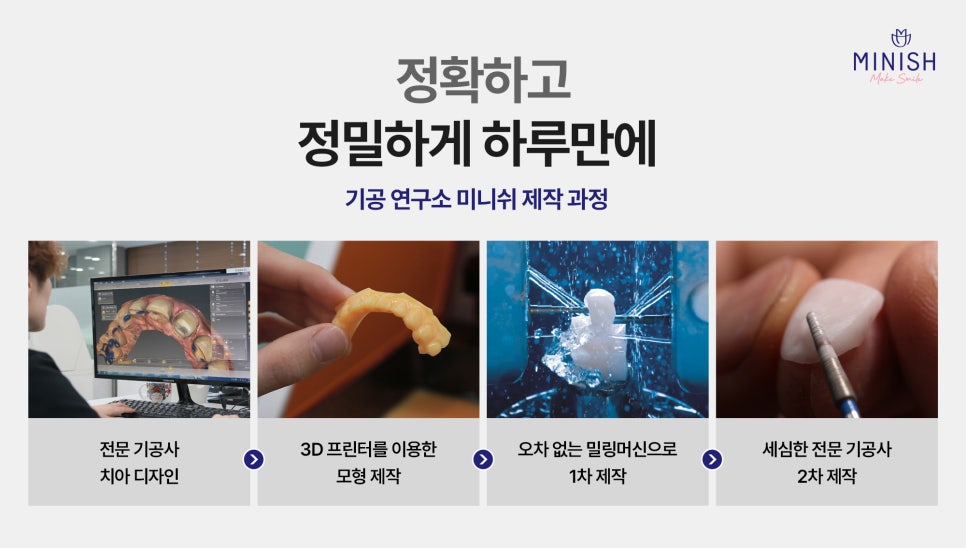 치아는 재생이 어려운 부분이므로 건강한 상태를 오래 유지하려면 보다 보존적인 방법을 선택하는 것이 중요합니다. 이를 고려할 때 미니쉬는 자연스럽고 건강한 미소를 원하는 분들에게 적합한 선택이 될 것입니다.