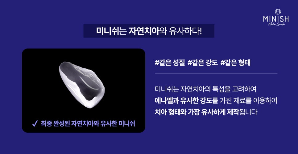 미니쉬 브릿지는 단순히 치아를 복구하는 것을 넘어, 치아와 잇몸의 건강까지 지키는 솔루션입니다. 이는 미니쉬 테크놀로지가 개발한 정밀 접착 기술과 생체 모방 재료의 혁신 덕분입니다.