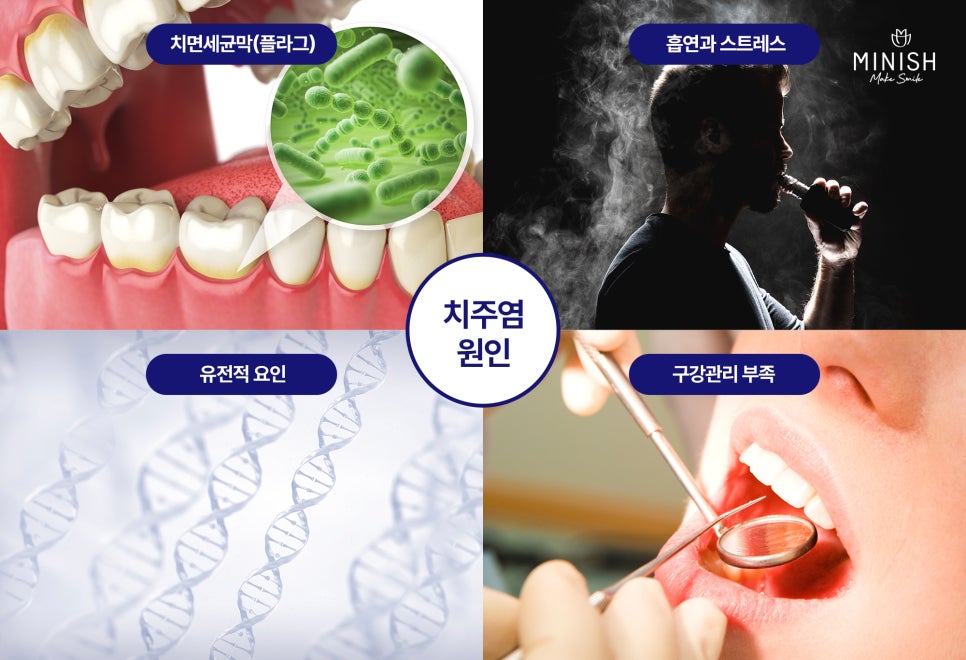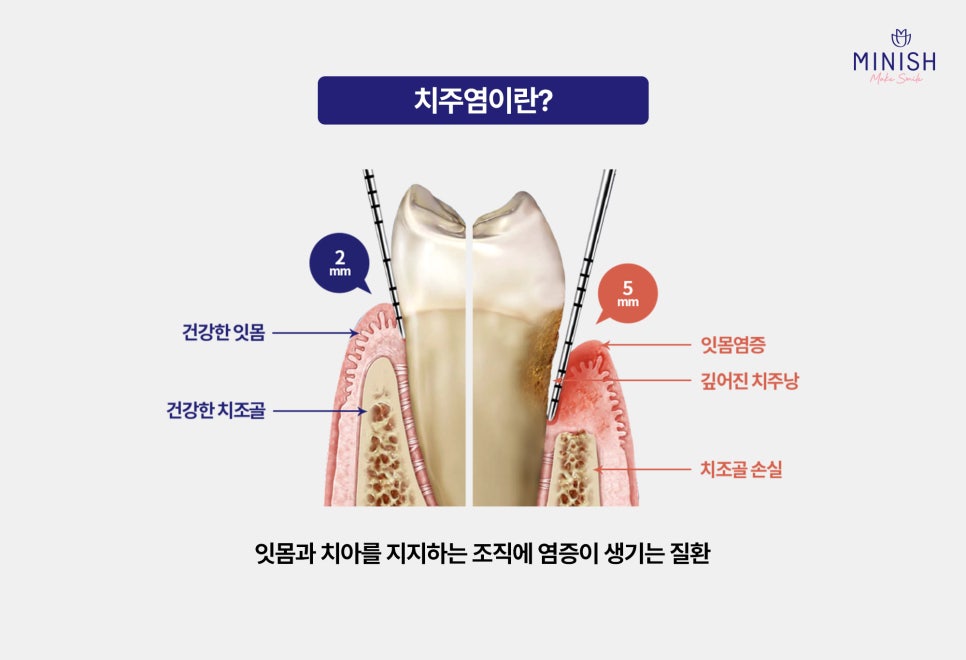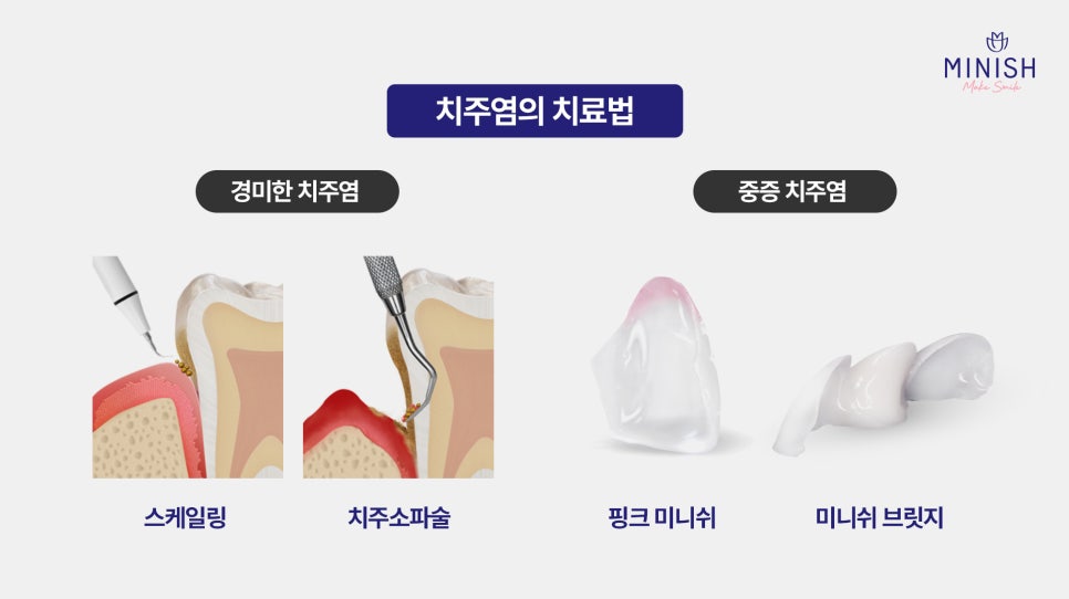 오늘은 치주염의 원인과 예방법, 그리고 미니쉬에서 제공하는 차별화돈 치료법에 대해 알아보겠습니다.