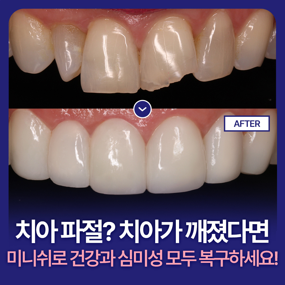 치아 파절? 치아가 깨졌다면 미니쉬로 건강과 심미성을 모두 복구하세요!
