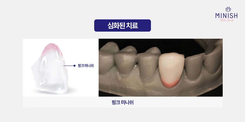 핑크 미니쉬는 치주 조직의 기능성을 회복시키는 동시에 미소의 심미성을 강화합니다. 자연스러운 잇몸 색상과 라인을 되찾아 자신감 있는 미소를 만들어 줍니다.