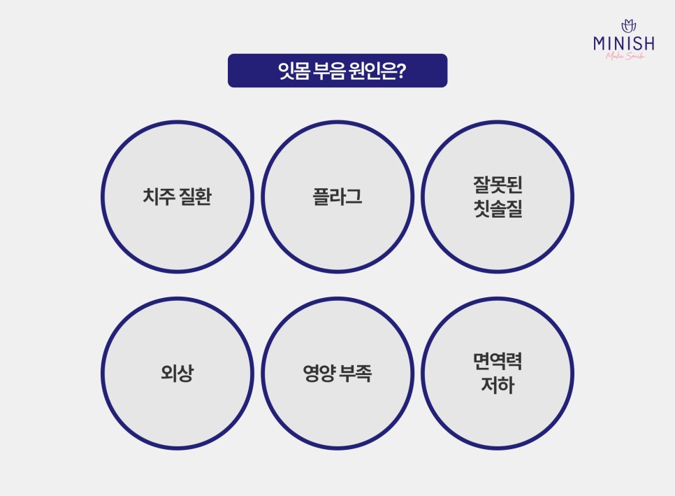 잇몸이 붓는 데는 다양한 원인이 있습니다. 이를 파악하고 원인을 제거하는 것이 건강한 잇몸으로 돌아가는 첫걸음입니다.