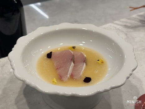음식의 플레이팅까지 직접 신경 써주신 정용진 셰프님! 👨🍳✨ 각 요리마다 특별한 스토리가 더해져, 맛뿐만 아니라 듣는 재미까지 더해진 시간이었습니다. 😆 게다가 음식에 어울리는 주류 페어링까지 완벽하게 준비! 🍷🥂 그야말로 오감이 만족하는 순간들이었는데요. 이 정도면 말이 필요 없는 최고의 다이닝 경험이었죠! 😍👏