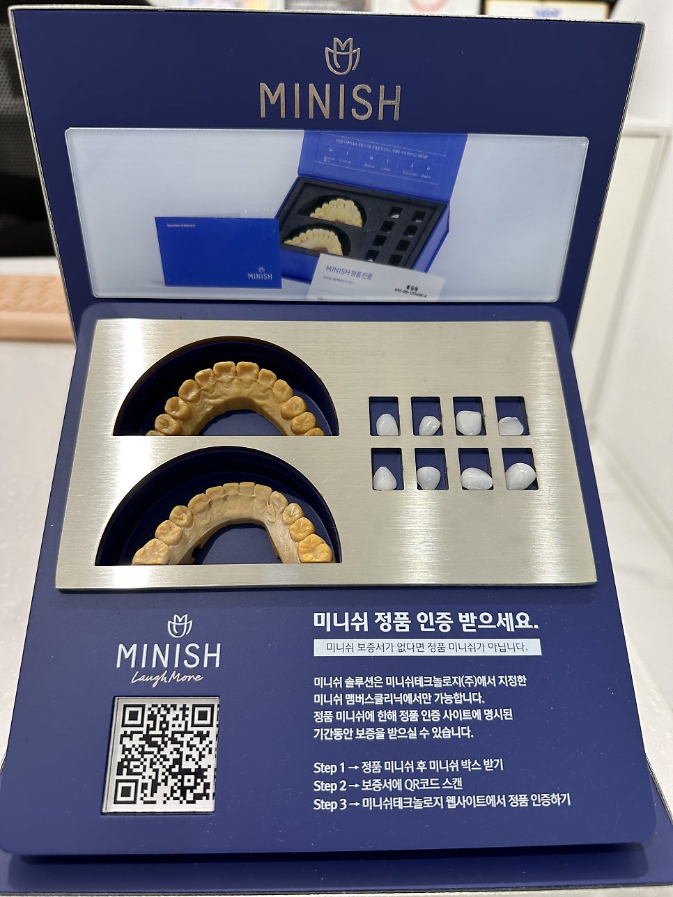 치아복구 솔루션 미니쉬는 장기간의 추적 관찰 데이터를 바탕으로 최대 10년 보증서를 발행합니다. 단순한 마케팅이 아니라, 실제 임상 결과를 토대로 설정된 보증기간입니다. 만약 15년이 지나서도 문제가 생기지 않다는 판단이 선다면 보증기간은 자연스럽게 연장될 것입니다. 추가로 미니쉬는 치료 전후의 치아 상태를 본뜬 구강 모델을 ‘미니쉬 박스’에 담아 제공합니다. 이를 통해 환자가 자신의 치아 삭제량과 변화를 직접 확인할 수 있도록 합니다.