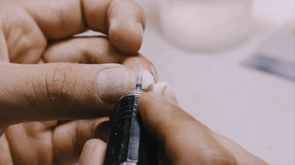 기존 라미네이트를 제거한 후, 미니쉬블록을 활용해 손상된 에나멜(법랑질) 층을 재현합니다.