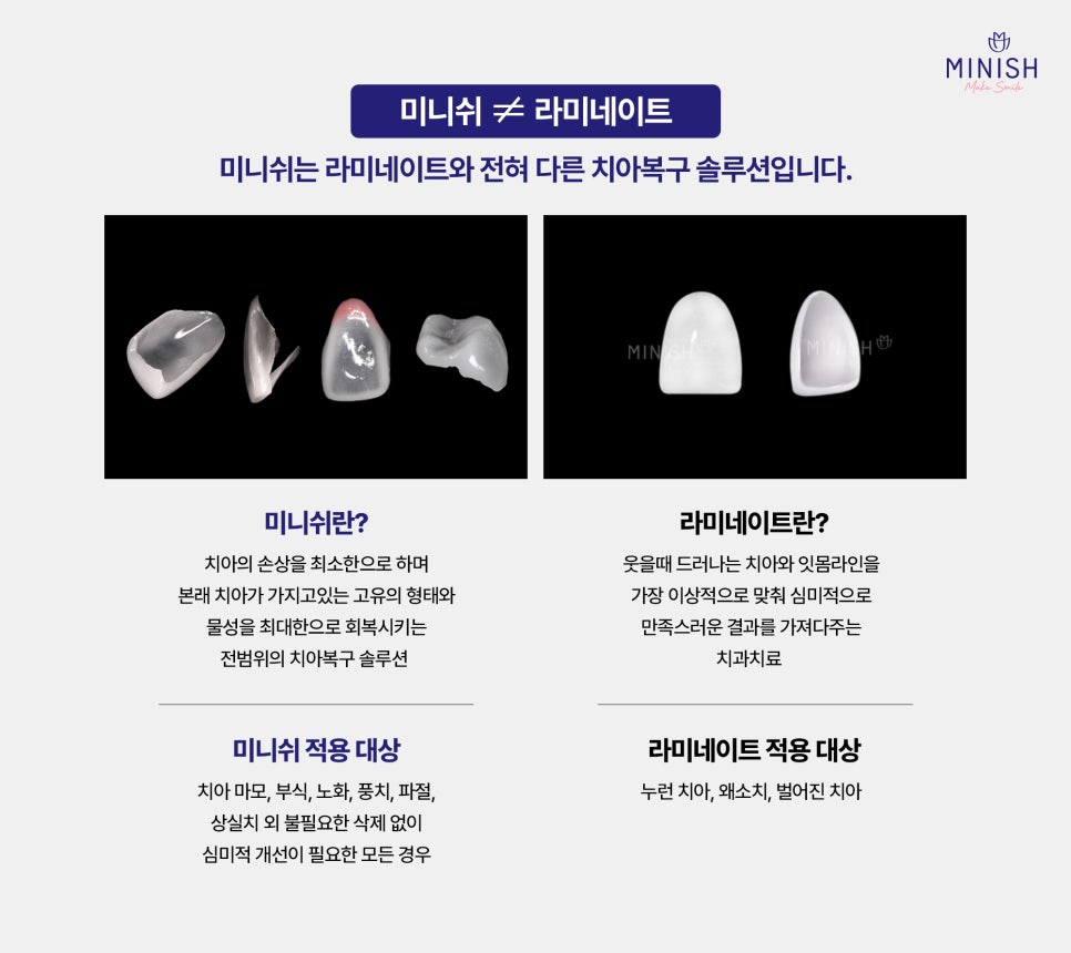 치아복구 솔루션 미니쉬 VS 라미네이트