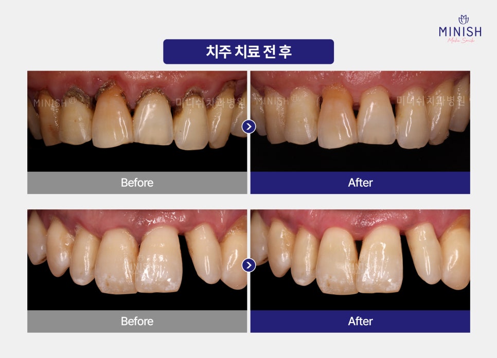 잇몸이 내려가면 단순히 외형적인 문제뿐만 아니라 치아 뿌리 노출로 인한 시림 증상(과민증) 등 기능적인 문제도 함께 해결해야 합니다. 이를 위해 치주 치료를 먼저 진행한 후 핑크미니쉬와 같은 복구 방법을 고려할 수 있습니다.