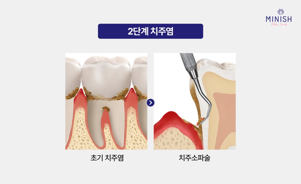2단계: 치주염 (진행된 잇몸병)