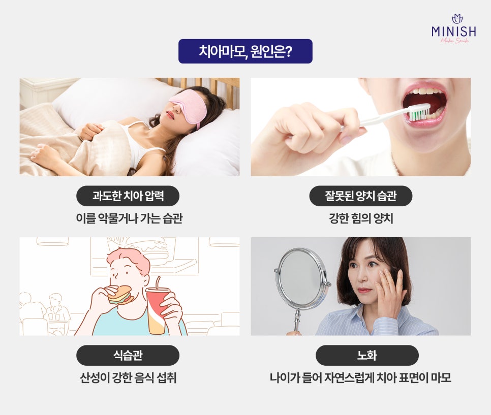 이번 글에서는 치아마모의 원인과 증상, 예방법을 살펴보고 이미 진행된 치아마모 문제를 치아복구 솔루션 미니쉬를 통해 어떻게 해결할 수 있는지 알아보겠습니다.