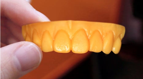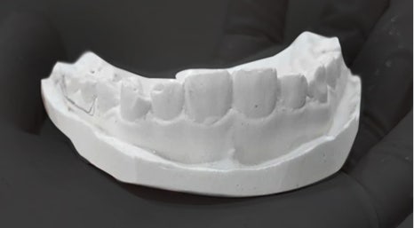 치아 본을 뜬 후 석고를 부워서 굳혀서 만든 치아모형(왼쪽) 3D프린트로 만든 미니쉬 치아 모형. 정밀성에서 큰 차이를 보입니다.