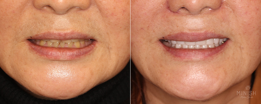 무엇보다 노화로 약해진 치아를 복구함으로써 치아뿐 아니라 얼굴 전체에도 긍정적인 변화가 일어났습니다. 치아가 탄탄해지면서 얼굴 근육이 더 자연스럽게 움직이게 되었고 미소를 지을 때 표정이 부드러워지며 안면을 지탱하는 근육 활동이 활발해져 보다 젊고 건강한 인상을 얻을 수 있었습니다.