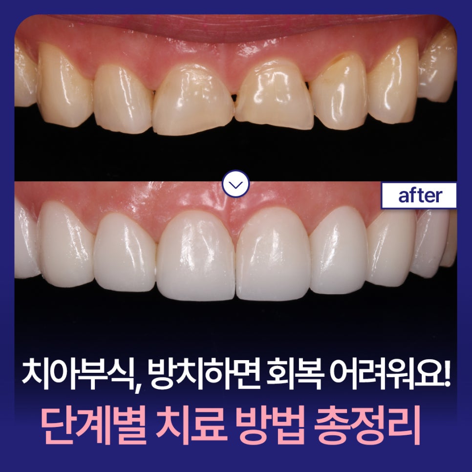 이번 글에서는 치아부식의 원인과 증상 그리고 단계별로 가능한 치료 방법과 건강하게 복구할 수 있는 방법까지 알려드리겠습니다.