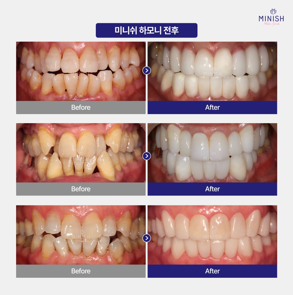 단순히 보기 좋게 만드는 것을 넘어, 기능적 불편까지 동시에 개선할 수 있습니다. 짧은 시간 안에 치아 배열과 외형까지 자연스럽게 회복하고 싶은 분들께 미니쉬 하모니는 가장 합리적인 선택이 될 수 있어요.