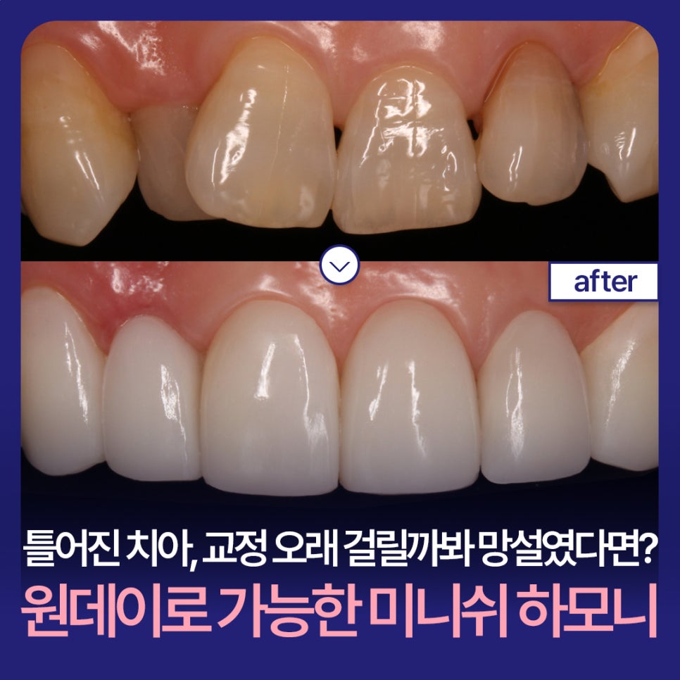 틀어진 치아, 교정 오래 걸릴까봐 망설였다면? 원데이로 가능한 미니쉬 하모니