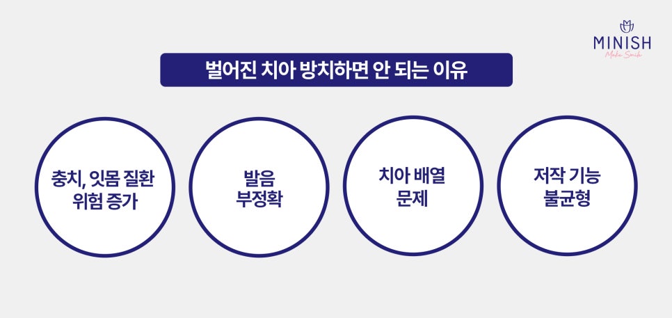 - 치아 배열이 무너지고 부정교합으로 진행될 수 있어요