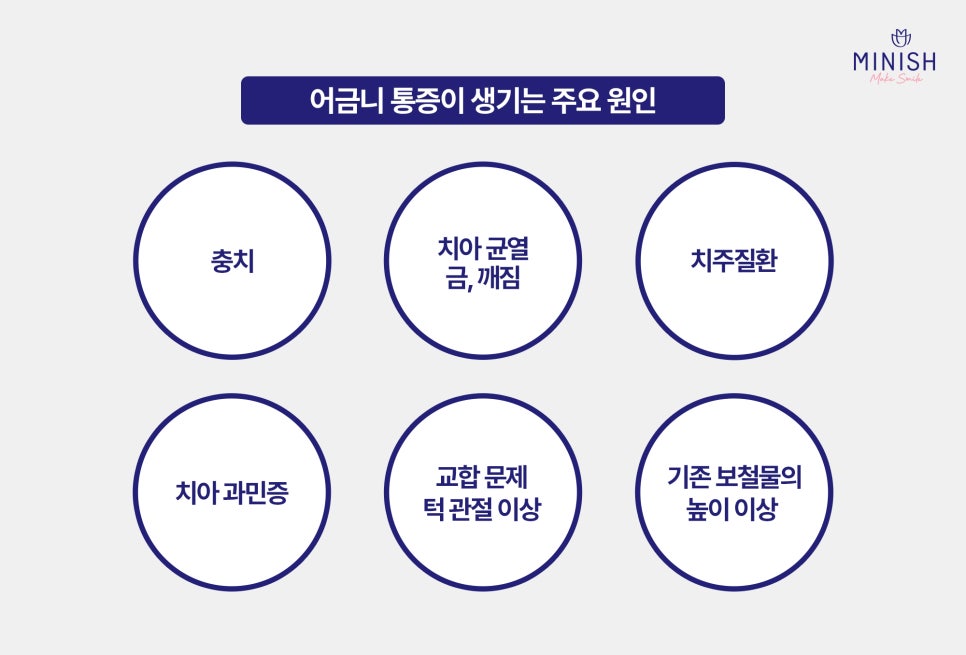 어금니 통증은 많은 사람이 경험하지만, 심각하게 받아들이지 않는 경우가 많습니다. 어금니는 씹는 기능을 담당하는 치아 중 가장 중요한 역할을 하기에 통증이 발생하면 빠르게 원인을 찾고 치료하는 것이 중요합니다. 방치할 경우 통증이 심해질 뿐 아니라 치아 손상이 더 커져 치료가 복잡해질 수 있기 때문입니다. 이번 글에서는 어금니 통증의 원인부터 손상 단계별 증상, 그리고 대표적인 치료법의 장단점과 함께 치아복구 솔루션인 어금니 미니쉬의 특장점까지 자세히 알아보겠습니다.