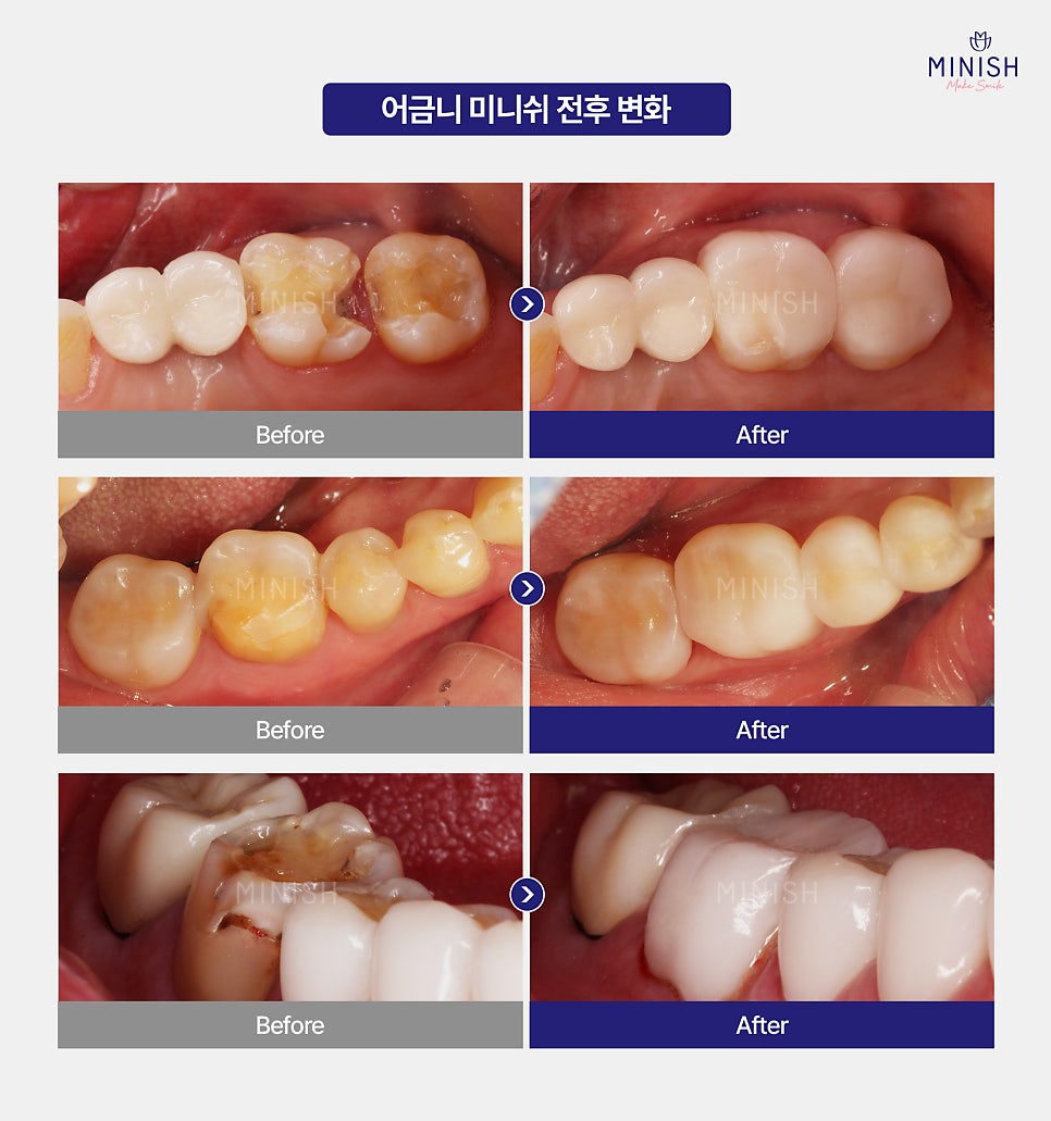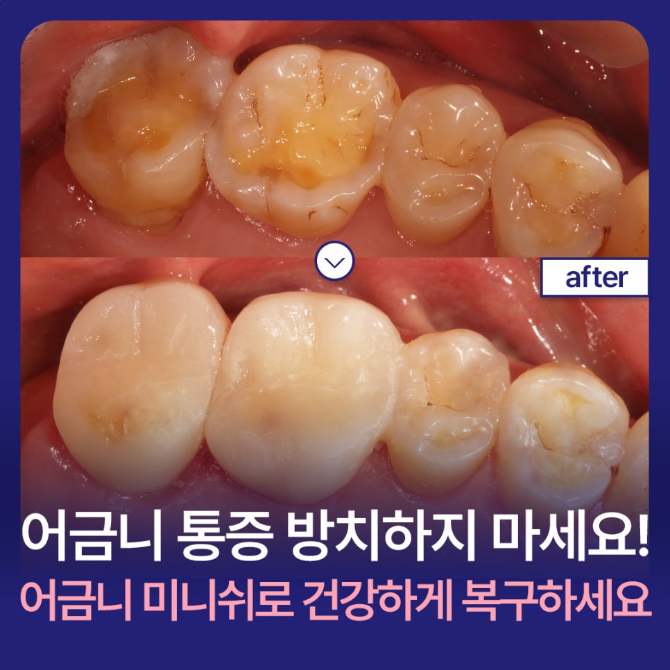 어금니 통증 방치하지 마세요! 어금니 미니쉬로 건강하게 복구할 수 있습니다.
