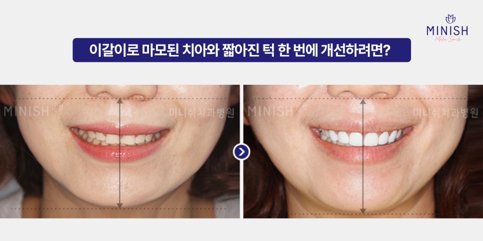 이미 이갈이로 인해 마모된 치아와 짧아진 턱 라인까지 한 번에 개선하고 싶다면, 치아복구 솔루션 미니쉬가 있습니다.