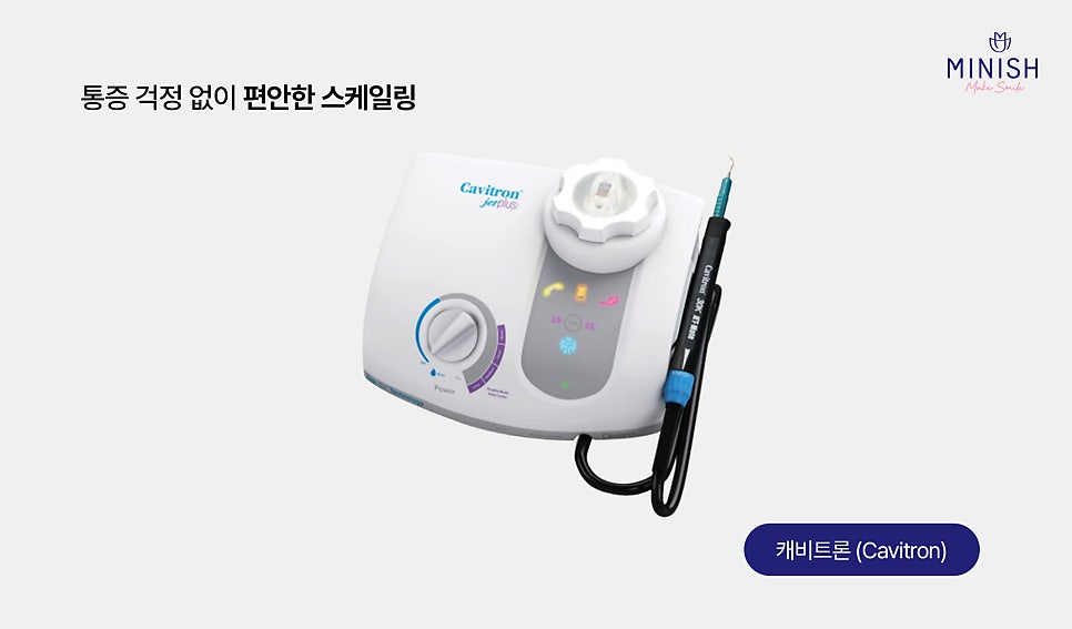 캐비트론은 스케일링 시 통증과 자극을 최소화하는 저자극 장비입니다.