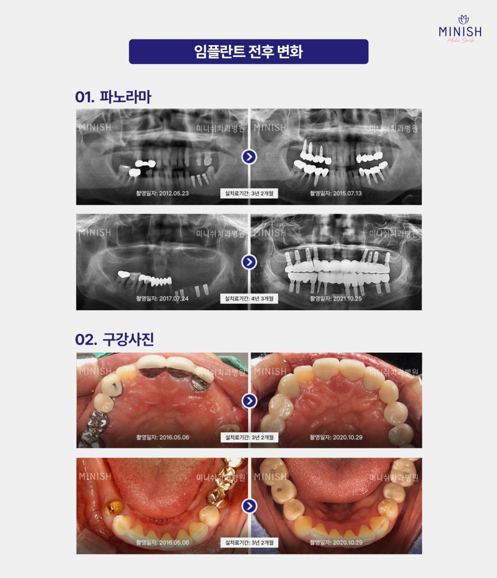 미니쉬치과병원의 임플란트 전후 변화