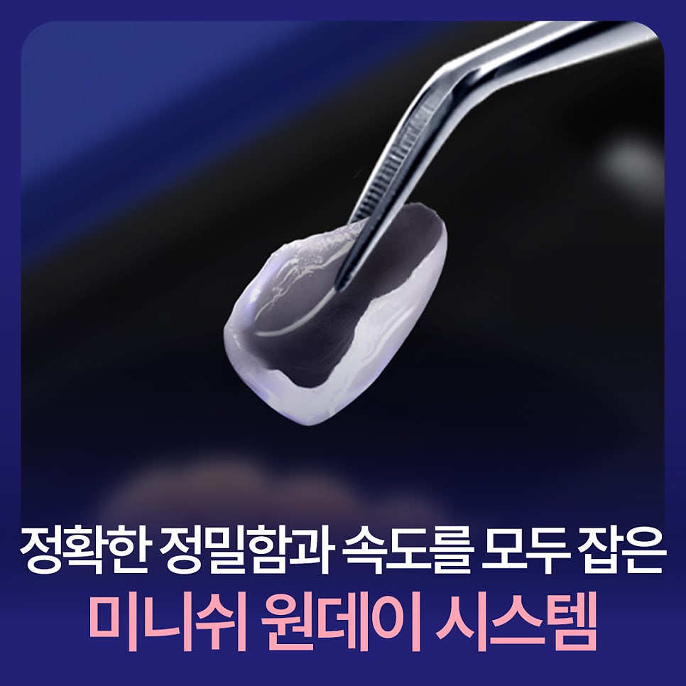 치과 치료는 보통 여러 번 내원이 필요해 시간적 부담이 큰 경우가 많습니다. 그러나 미니쉬 원데이 시스템은 하루 만에 정밀한 수복이 가능해 바쁜 일상 속에서도 짧은 시간에 치아 개선을 마칠 수 있습니다. 시간 단축뿐만 아니라 치료 직후 바로 일상생활에 복귀할 수 있어 환자의 심리적·신체적 부담을 줄여줍니다. 무엇보다도 불필요한 치아 삭제 없이 정밀한 수복이 가능하다는 점에서 건강을 지키면서 심미적 개선까지 원하는 환자들에게 최적의 치아복구 솔루션이 됩니다.
