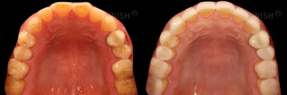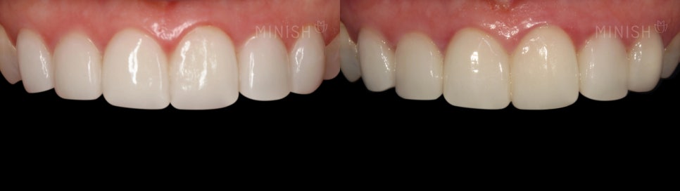 - 미니쉬 : 약해지거나 손상된 에나멜 보호층을 복구하는 것을 목표로 합니다. 건강한 에나멜은 원래 투명한 흰빛을 띠기 때문에 복구가 이뤄지면 자연스럽게 밝고 건강한 치아색으로 보입니다.