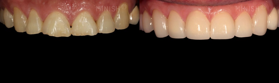 미니쉬와 라미네이트는재료, 제작 방식, 개발 주체 등 여러 요소에서 이미 큰 차이가 있습니다. 하지만 두 가지를 구분하는 가장 핵심 기준은 적용할 수 있는 치아 범위입니다. 이는 두 방식이 목적 자체가 다르기 때문입니다.