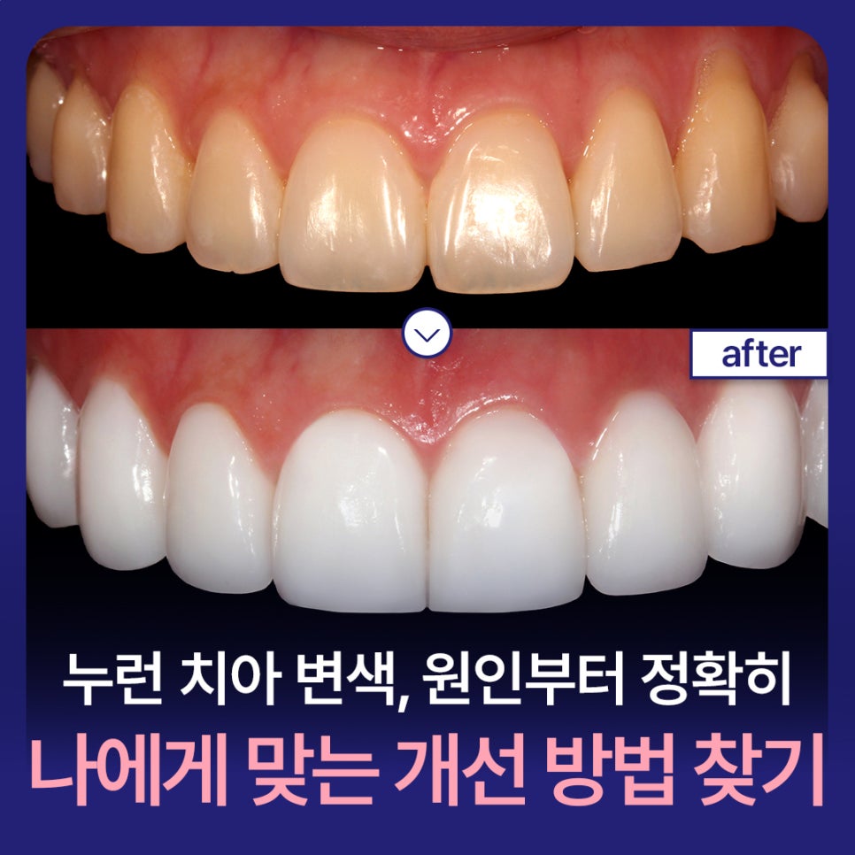 거울을 볼 때는 몰랐는데, 사진 속 내 치아가 유난히 누렇게 보여 깜짝 놀란 경험 있으신가요? 양치도 열심히 하고, 치아 관리를 소홀히 하는 편도 아닌데 어느 순간부터 치아 톤이 전체적으로 어두워지면서 자신 있게 웃지 못하는 분들이 많습니다. 치아 변색은 단순한 ‘미관 문제’가 아니라 원인을 제대로 파악해야 적절한...