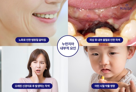 - 내부적 요인 – 치아 속 구조가 변하면서 누래진 경우