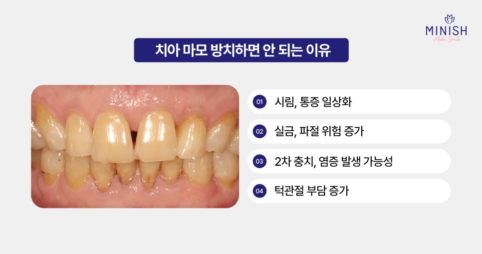 마모가 깊어질수록 기능적인 문제로 이어져 일상적인 식사에도 불편함이 나타날 수 있습니다.