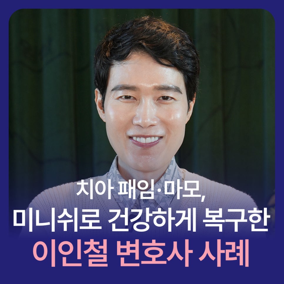속 시원한 가사 상담으로 잘 알려진 이인철 변호사님이 최근 미니쉬치과병원에서 치료를 받았습니다. 오랜 시간 누적된 치아 기능 문제로 일상과 업무에서 불편함을 느끼며 고민한 끝에 내린 결정이었다고 합니다. 이 선택에는 20년 이상 변호사로 활동해온 그의 기준과 관점이 자연스럽게 담겨 있었습니다. 20년 넘게 법조...