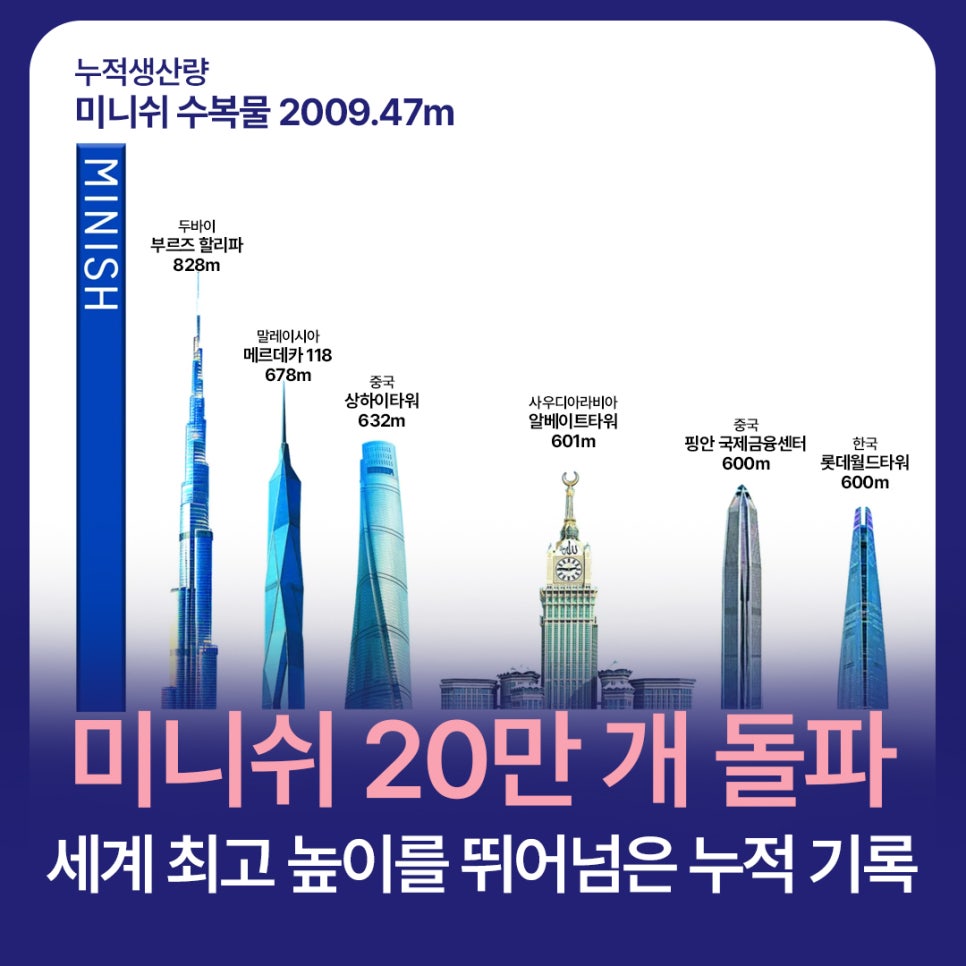 미니쉬 20만 개 돌파, 세계 최고 높이를 뛰어넘은 누적 기록