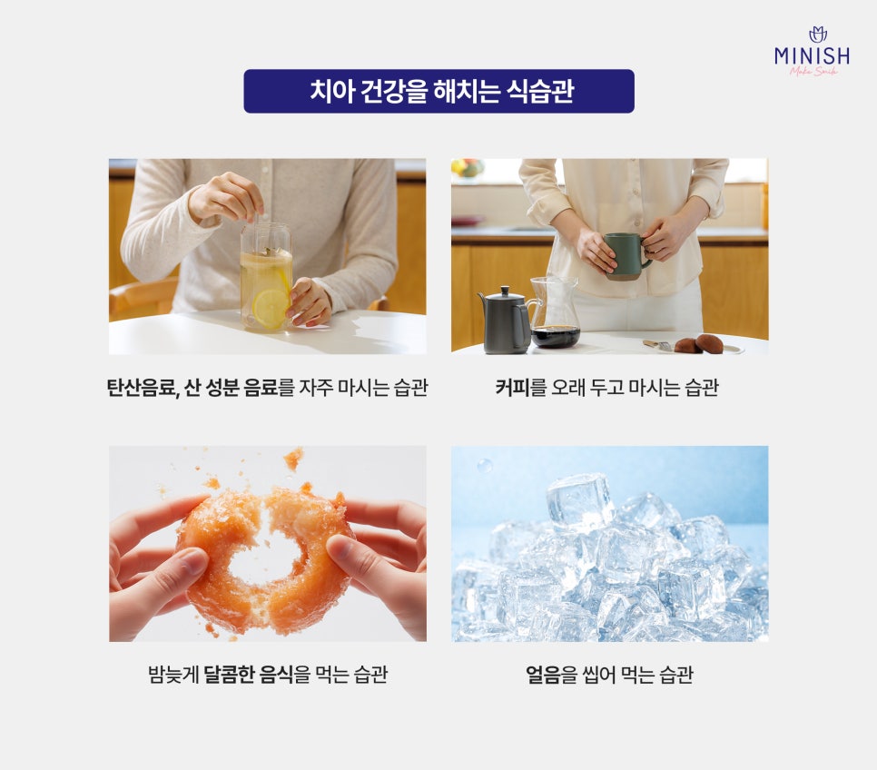 - 탄산음료, 산 성분 음료를 자주 마시는 습관