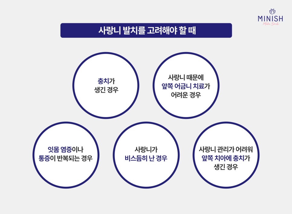 사랑니 중에서도 발치를 권장하는 경우는 비교적 명확합니다.