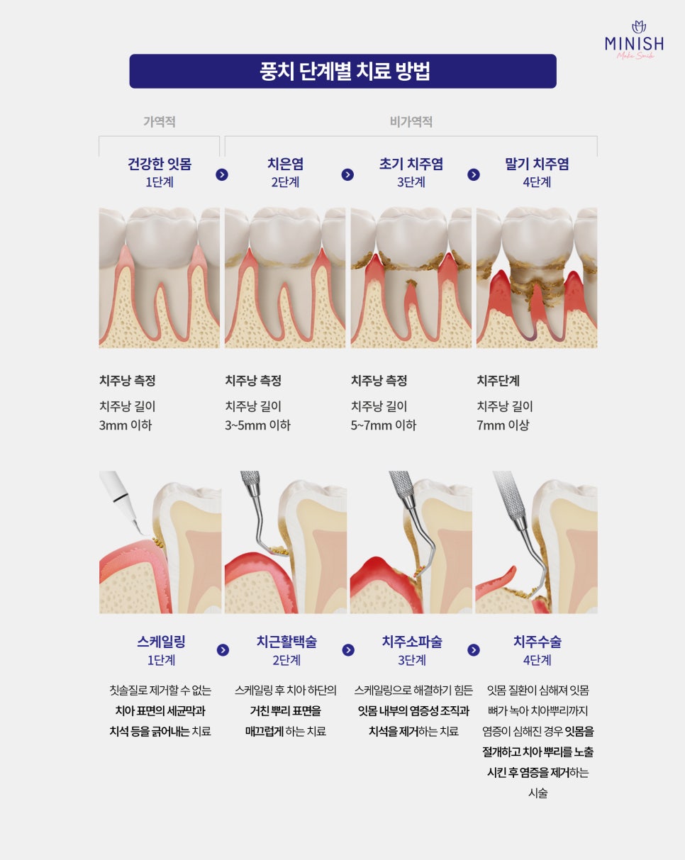 풍치는 진행 단계에 따라 치료 방향이 달라집니다.