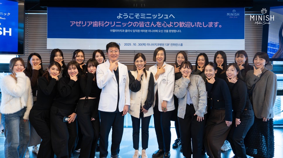 지난해 10월, 쇼코 원장은 아젤리아 치과 직원 13명과 한국의 미니쉬치과병원에 방문해 실제 현장에서 미니쉬가 어떻게 진행되는지 참관
