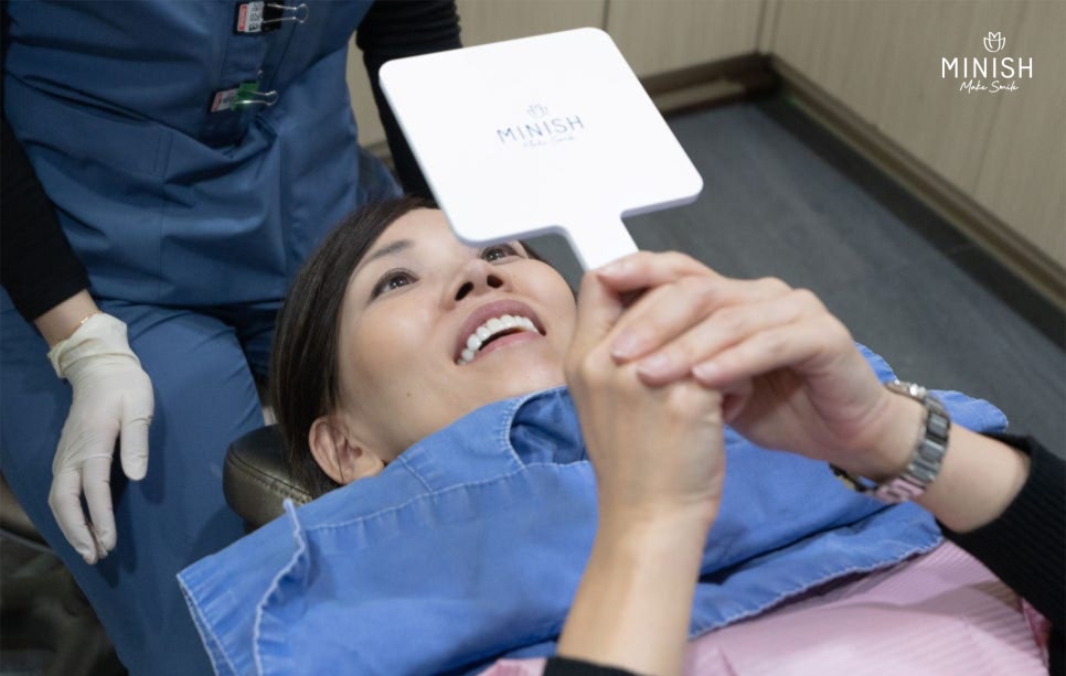 결과는 기대 이상이었다고 말했습니다. 특히 가장 놀라웠던 부분은 미니쉬 특유의 자연스러움이었습니다. 돌출감이 줄어들면서 입이 훨씬 편안하게 다물어졌고, 왜소치로 인해 불균형했던 치아 비율이 맞춰지면서 스마일 라인도 훨씬 정돈된 느낌을 받았다고 합니다.