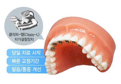 앞니설측교정에 사용되는 클리피-엘 설측교정 브라켓은 현존하는 장치 중 가장 작은 장치로, 과거 입 안에서 이물감이 커 불편이 많았던 설측교정과 달리 이물감이 최소화 되어 불편 없이 설측교정이 가능하게 되었습니다. 이물감이 적은 만큼 발음 하거나 일상생활에 큰 영향을 주지 않습니다.