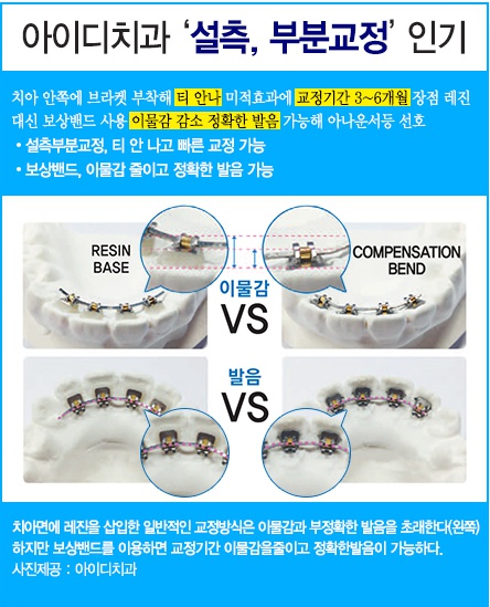 앞니설측교정 발음문제 해결, 심미적인 치아교정 치아교정을 고민하셨던 분들은 그 동안 무조건 치아 전체에 장치를 부착하여 교정하는 전체교정을 해야 한다고 생각하고 있는 분들이 지금도 적지 않습니다. 하지만 최근에는 앞니 6~8개에 장치를 부착하여 교정하는 부분교정이 대중화 되면서 가격과 긴 교정 기간 때문에 교정을 미루...