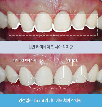 중점적인 것은 바로 0.1라미 네이트 자연치아의 삭제량입니다.