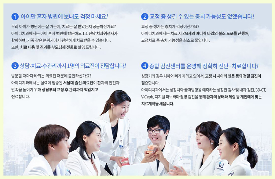 치료과정을 함께하는 아이디치과병원에서는 이런 걱정을 하지 않아도 된답니다.