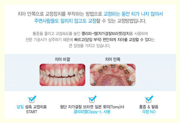 치아 겉면이 아닌 안쪽에 브라켓을 설치하기 때문에