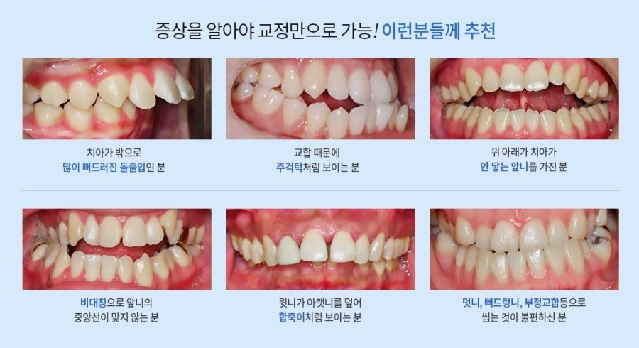 따라서 뻐드러진 이, 주걱턱, 위아래가 닿지 않는 앞니 등